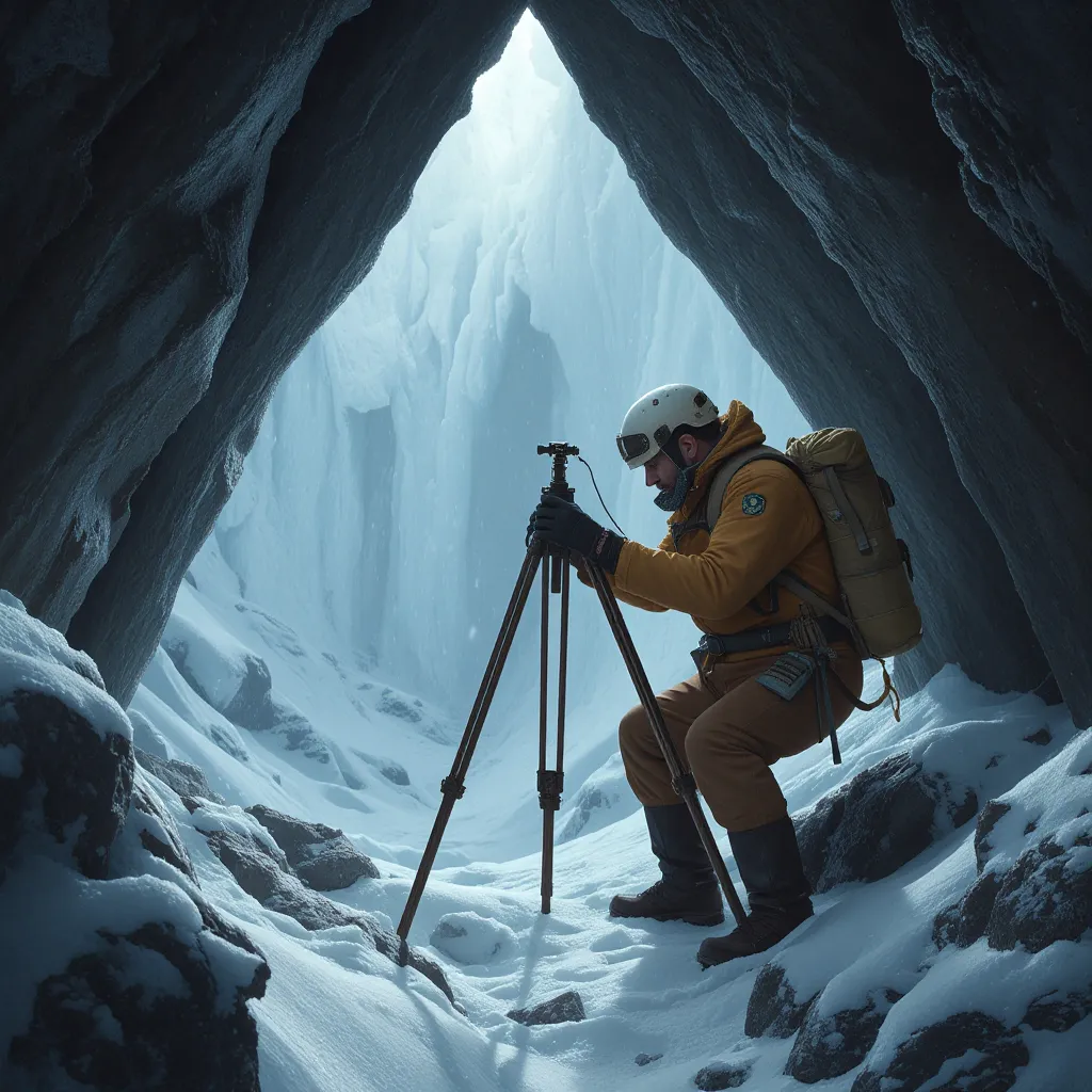 Вы выбираете роль экспедитора, ответственного за установку приборов для измерения геодезических параметров. Ваша команда столкнулась. Ваша команда столкнулась с внезапной бурей на перевале, и время ограничено: приборы надо развернуть до наступления темноты. Вы замечаете трещину в одном из ключевых штативов.