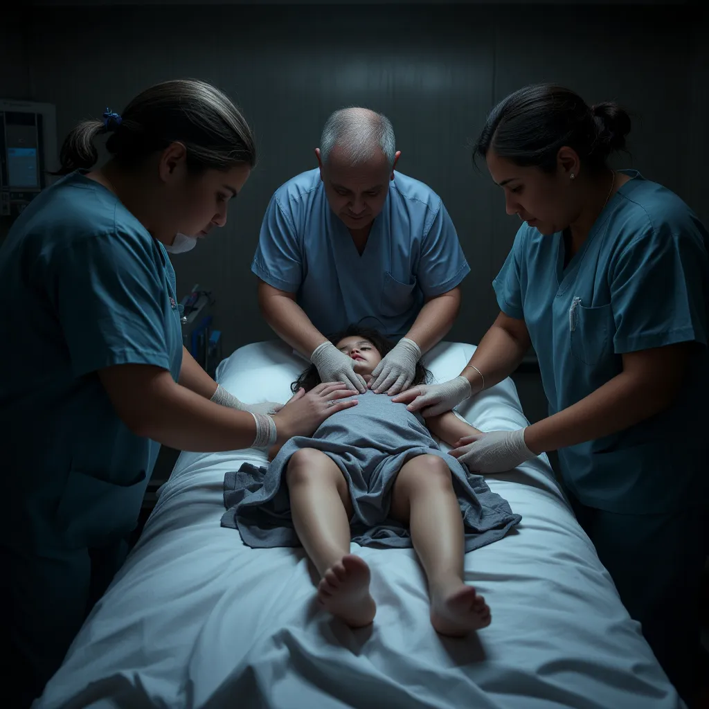 When Isabella arrived at the hospital, the medical team acted quickly. They carefully cut off the dirty grey dress to assess her injuries. The doctors discovered several fractures, indicating the severity of the abuse she had endured. Despite their best efforts, Isabella’s condition rapidly worsened. Suddenly, she crashed—her heart stopped beating effectively.