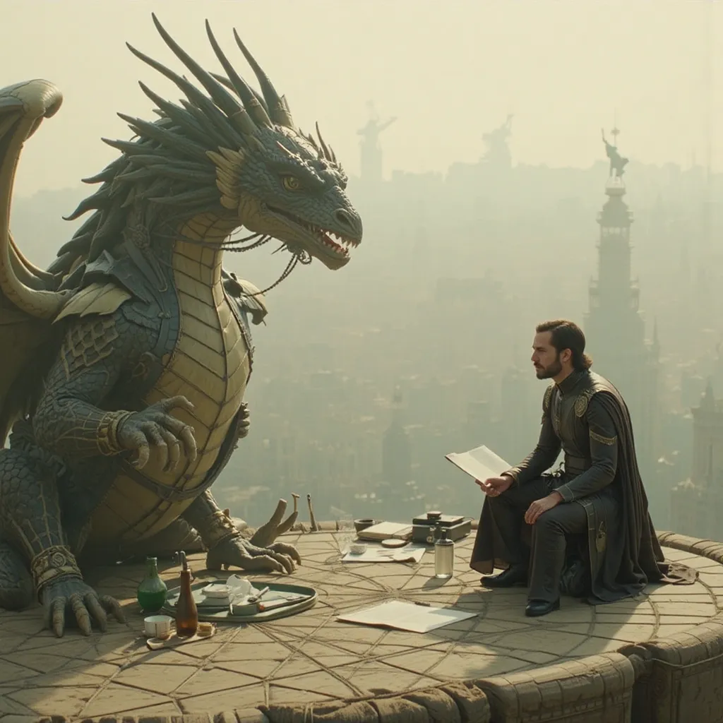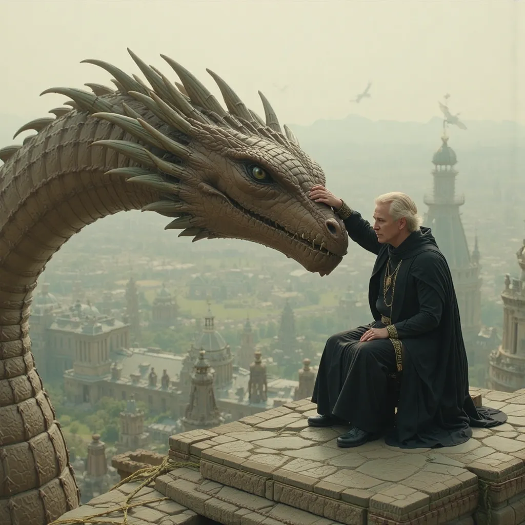 En lo más alto de la fortaleza real, Valkorion Targarien, primogénito del rey, miraba la lejanía desde un balcón de piedra. Junto a él, una sombra colosal se alzaba entre las montañas: Vytharos. Su dragón, su guardián… su destino. Desde su nacimiento, la bestia había estado a su lado, como si un llamado ancestral lo hubiera guiado hasta él. Pero hoy, Vytharos estaba inquieto.