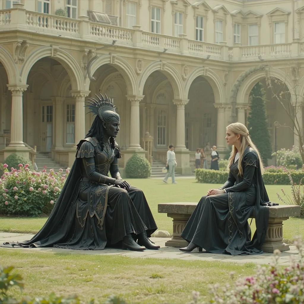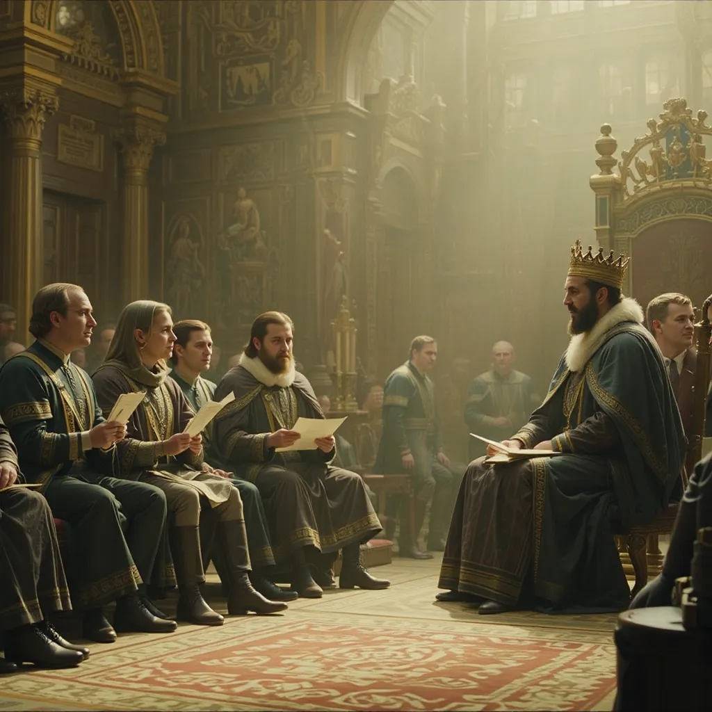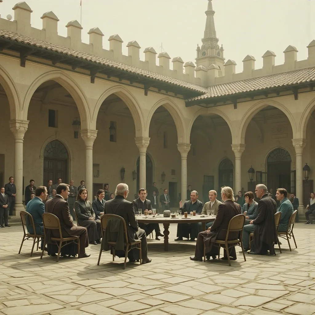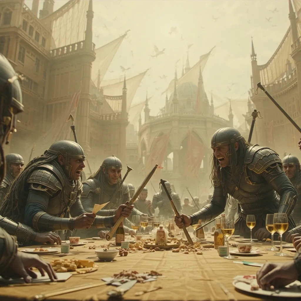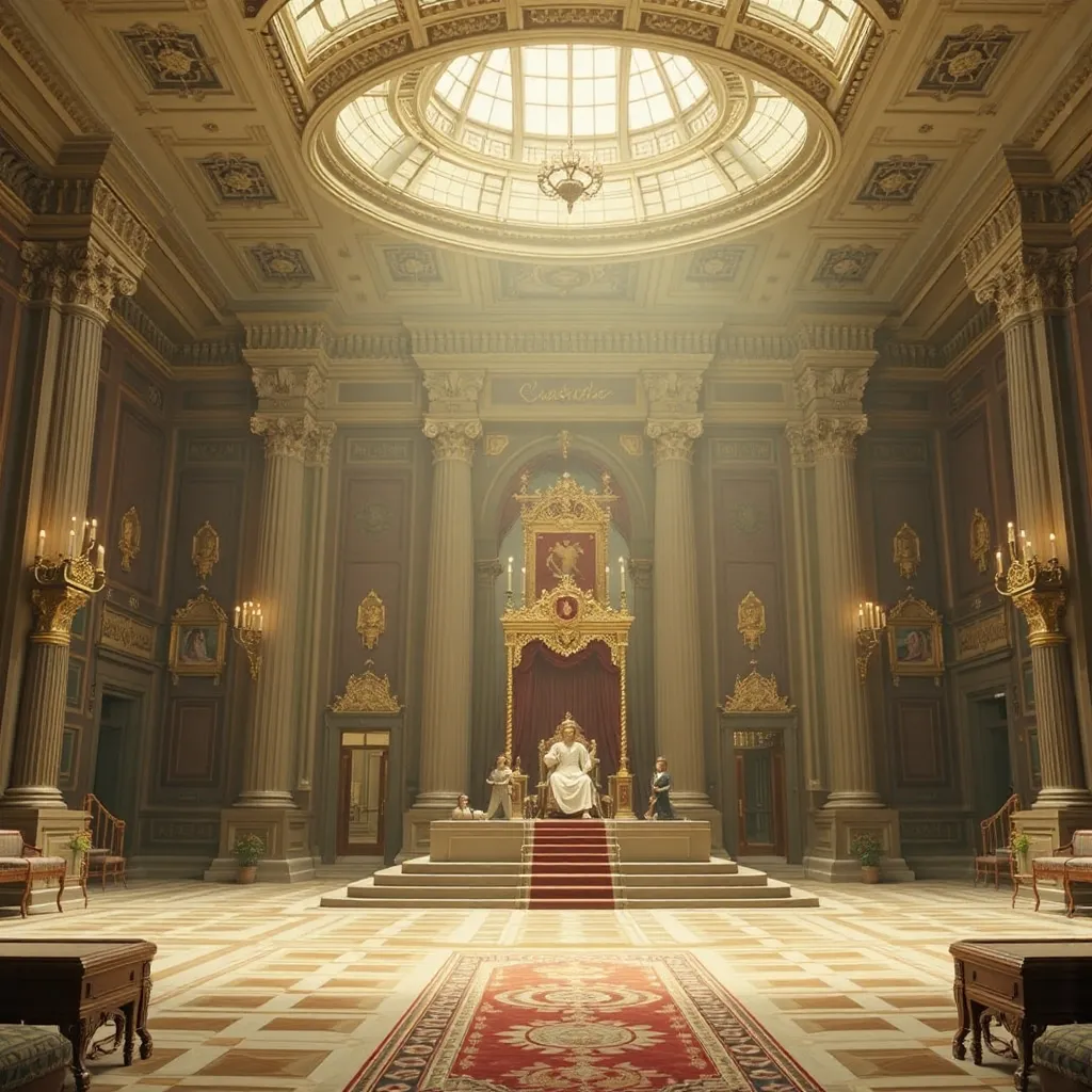 Horas más tarde, en el Gran Salón del Palacio de Auretia, los líderes se reunieron. En la mesa central estaba el Rey Aldric Targarien, flamante y venerable, con su manto de fuego dorado. A su lado, los representantes de la casa Glave y otros nobles de alto rango. Al frente, en el asiento que inspiraba recelo y desconfianza, se encontraba Emperador Kaelith Von Nilvan, un hombre de acero y ambición, su atuendo reflejando la maquinaria avanzada que caracterizaba su imperio.