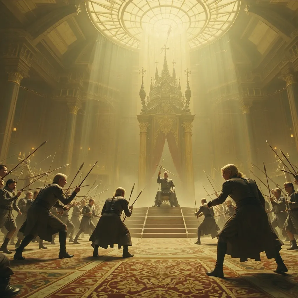 La sala estalló en caos. Valkorion, con reflejos entrenados, desenvainó su espada de Éter y corrió en defensa de su padre, mientras el fuego y la muerte caían sobre la capital de Auretia.