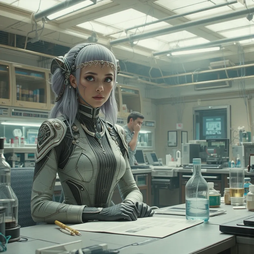 La puerta de la sala de contención se deslizó abierta con un silbido neumático, revelando el mismo ambiente estéril y frío del día anterior. Elara Kaizen estaba sentada en el borde de la litera incorporada a la pared, con la mirada perdida en algún punto indefinido del suelo metálico. Llevaba la misma ropa, aunque ahora ligeramente arrugada, y su expresión era una máscara de agotamiento y confusión. La energía combativa de la noche anterior parecía haberse disipado, dejando tras de sí una vulnerabilidad palpable. La bandeja de comida intacta sobre la pequeña mesa cercana era un testimonio silencioso de su estado de ánimo.