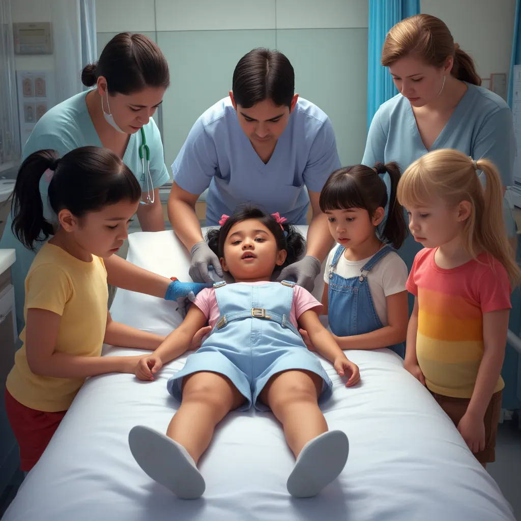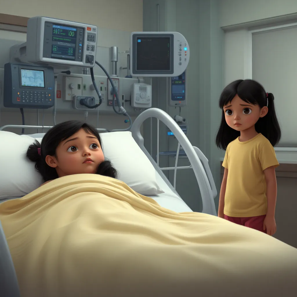 At the hospital, Isabella is immediately admitted to the ICU, where doctors and nurses monitor her closely as she remains in a coma. The sterile environment hums softly with machines tracking her vital signs, while soft lighting casts a calm glow. Hours later, after school, Sofia arrives at the hospital. Her eyes show a mixture of worry and hope as she quietly enters the ICU, looking for her best friend. Despite the sadness in the air, Sofia’s presence brings a comforting warmth to the room.